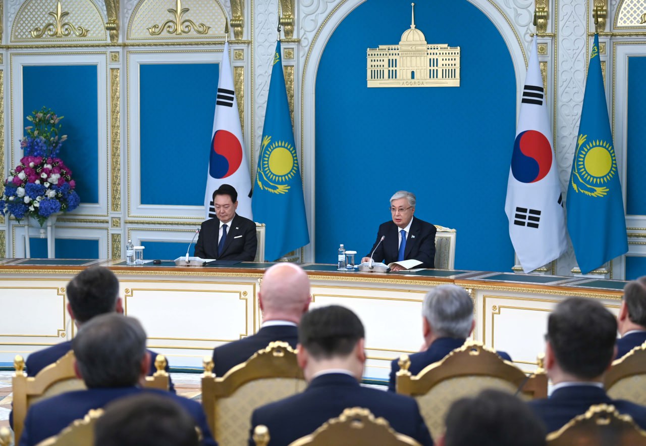 – За период до прошлого года объем инвестиций из этой страны достиг 9,6 млрд долларов. Обе стороны высказали заинтересованность в увеличении данного показателя. В Казахстане функционируют более 700 компаний с корейским капиталом. В их числе можно назвать такие крупные корпорации, как Samsung, Hyundai, Kia, Lotte, Doosan, Posco, которые успешно работают в нашей стране. Мы с Президентом Юн Сок Ёлем договорились укрепить наше всестороннее сотрудничество, прежде всего по таким направлениям, как развитие инфраструктуры и производства, финансы, энергетика, экология, автомобильная и аэрокосмическая промышленность, IT, цифровизация. В настоящее время компания Doosan Enerbility строит в Туркестане электростанцию на базе парогазовой установки. Samsung Electronics планирует начать производство бытовой техники в нашей стране. Мы полностью поддерживаем данную инициативу. Компания GL Ralpha намерена построить биофармацевтический завод в Астане, – сказал Президент.
