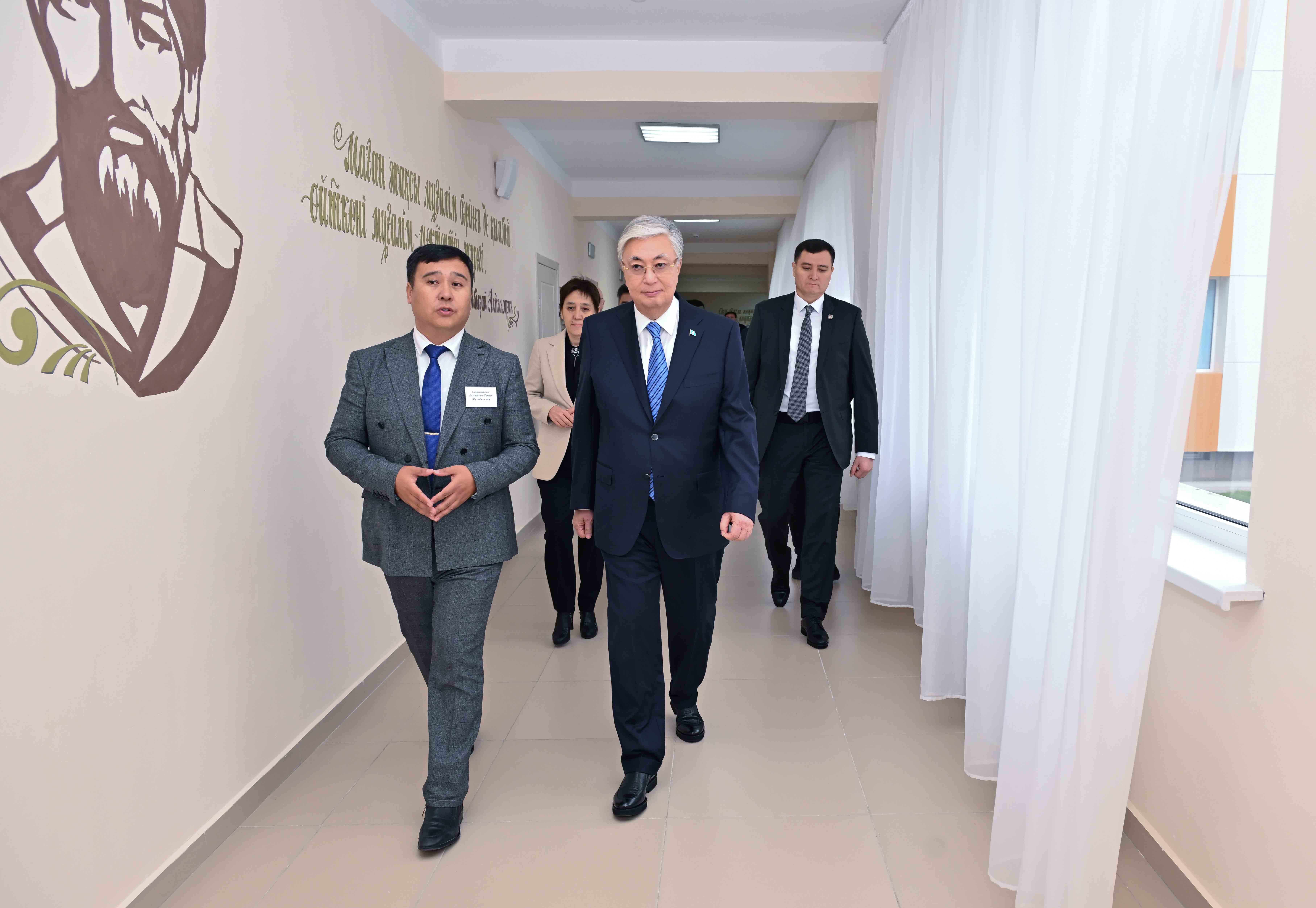 Затем Глава государства посетил среднюю школу в Уштобе.