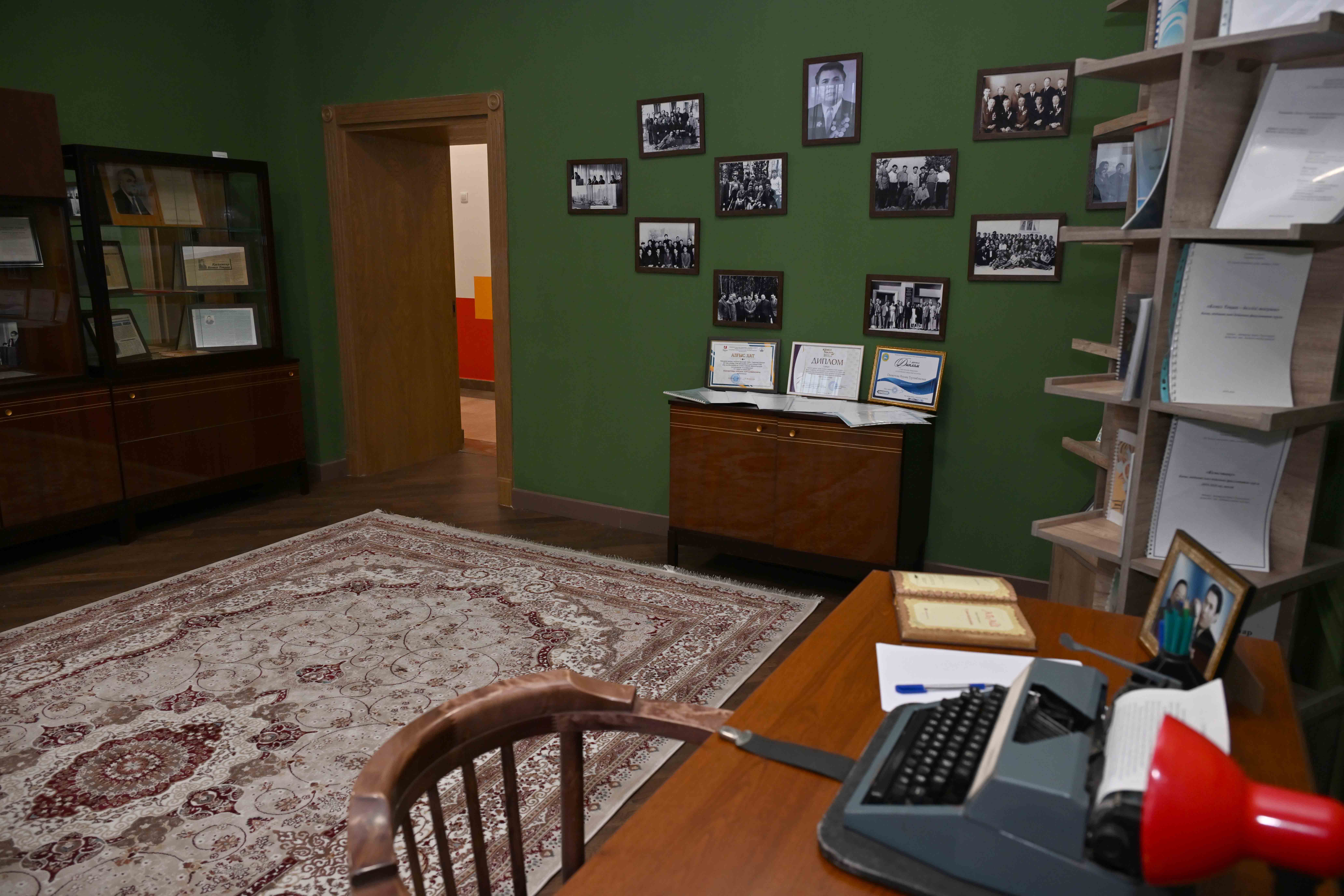 Президенту показали кабинет-музей Кемеля Токаева, где выставлены произведения писателя и его личные предметы.