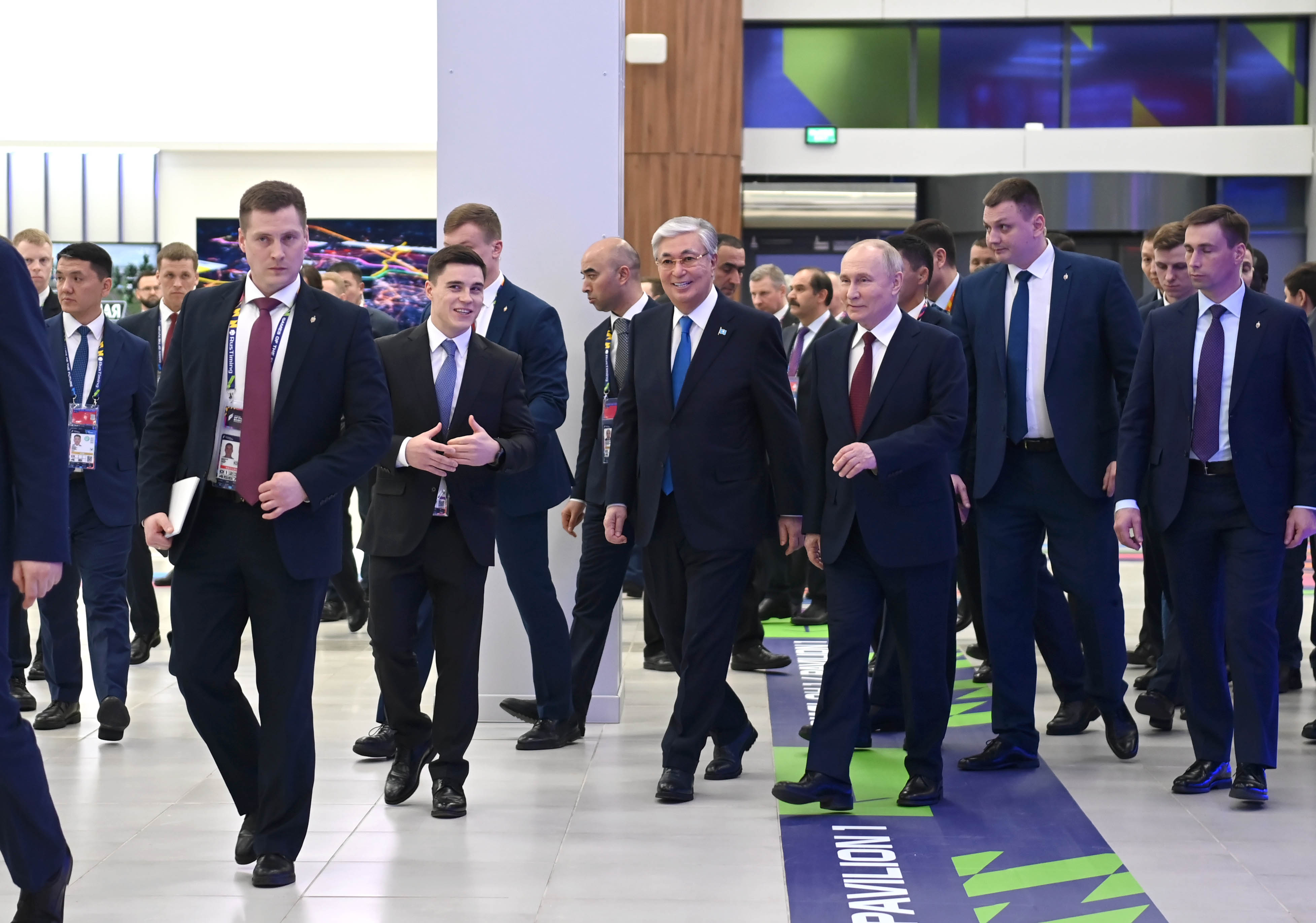 После церемонии Президент Казахстана и лидеры других стран, прибывшие в столицу Татарстана, осмотрели комплекс «Казань Экспо», в котором пройдут основные мероприятия международного мультиспортивного турнира «Игры будущего».