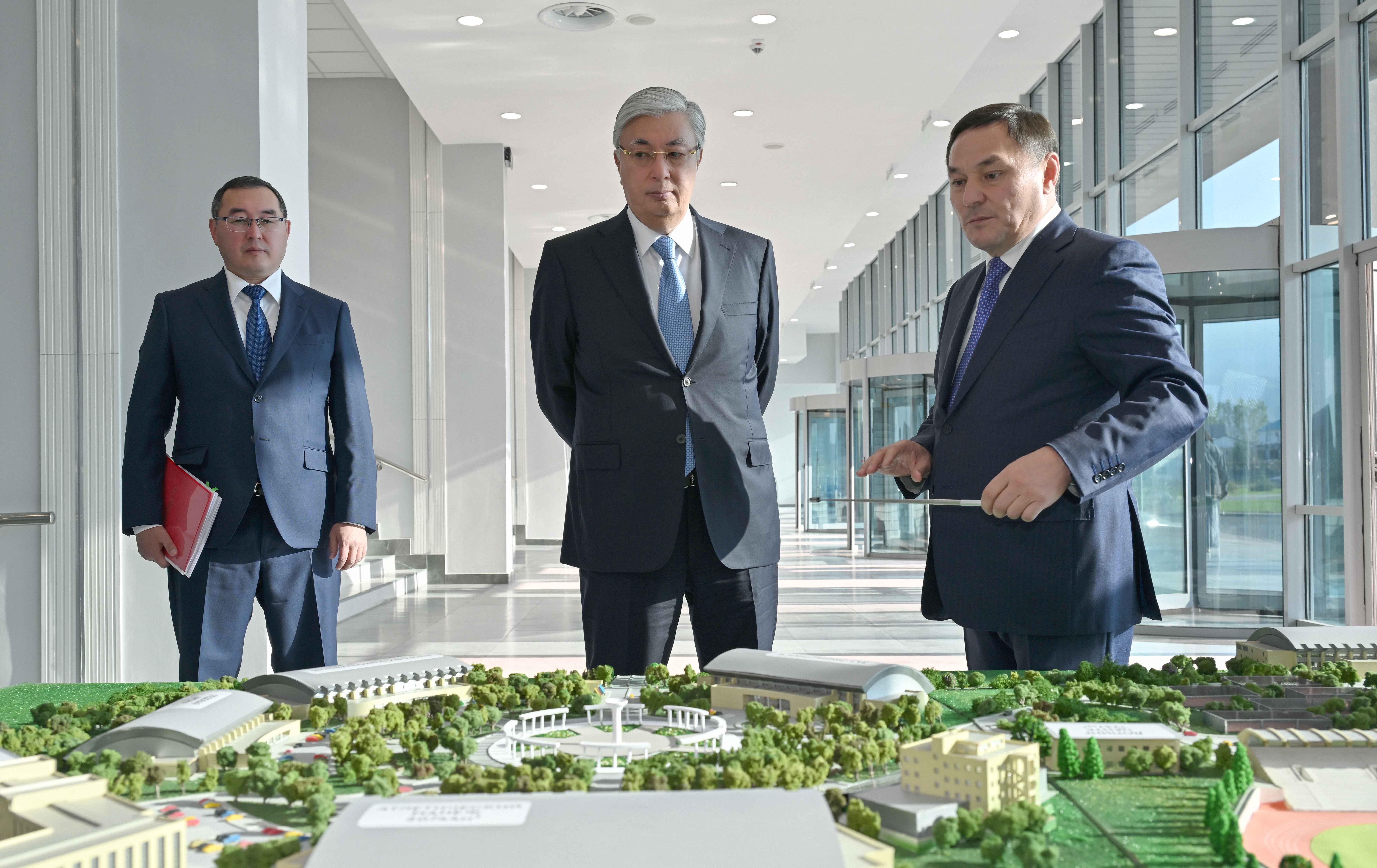 Глава государства в рамках рабочей поездки в Алматинскую область ознакомился с ходом строительства центра олимпийской подготовки.