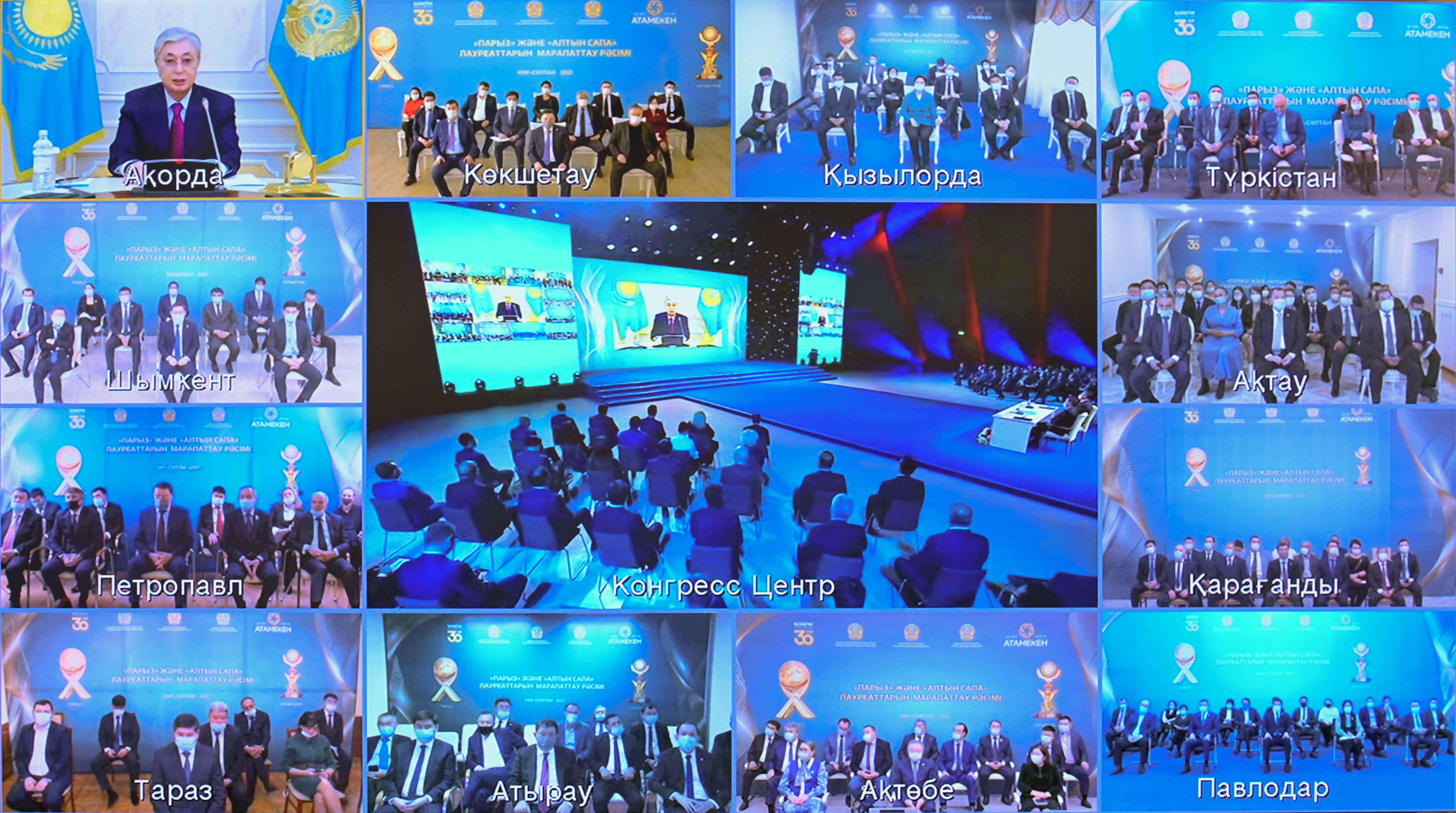 Глава государства в режиме видеоконференцсвязи выступил на торжественной церемонии награждения лауреатов премий Президента Республики Казахстан «Алтын сапа» и «Парыз».