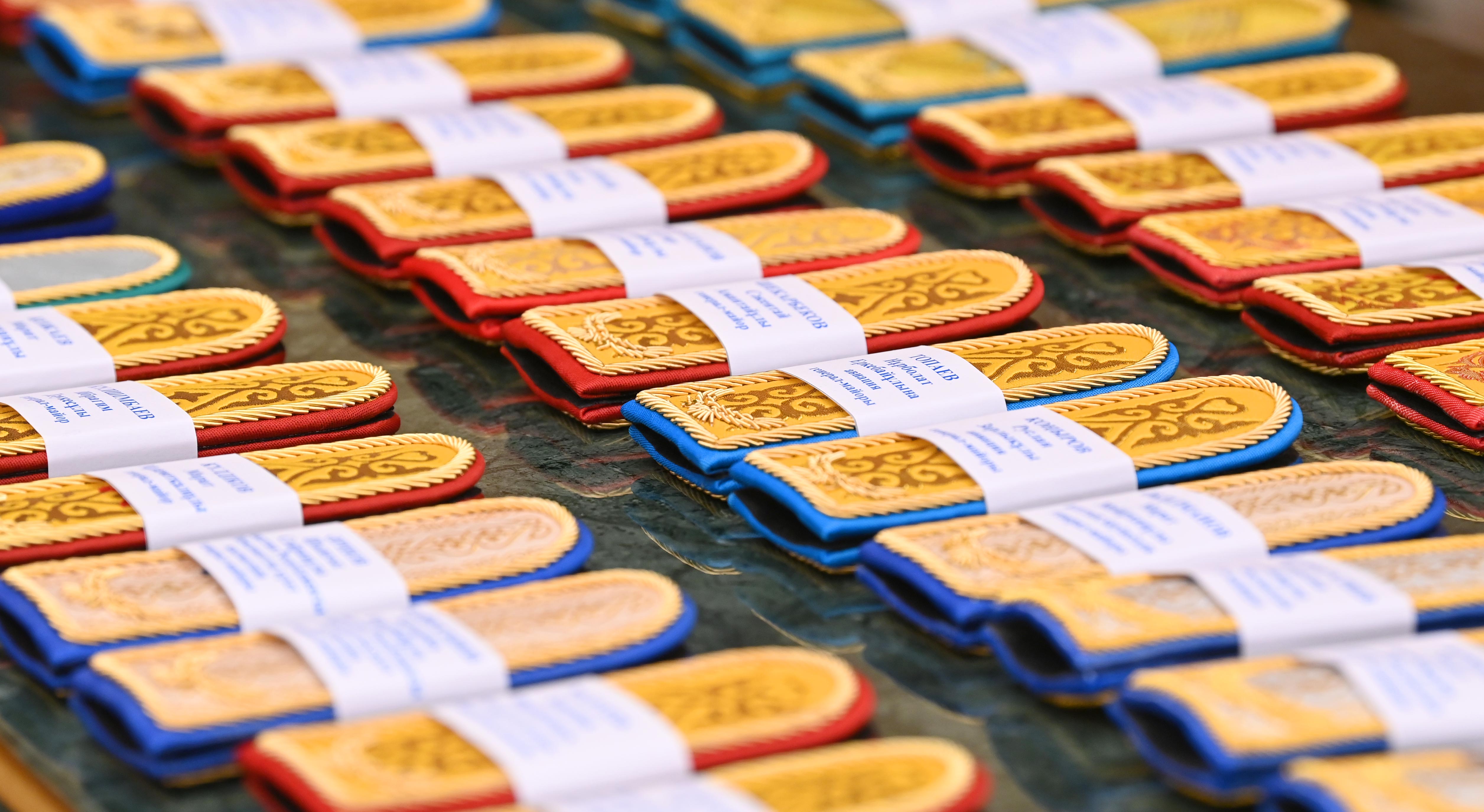 Затем Президент присвоил воинские и специальные звания, классные чины офицерам и вручил государственные награды.