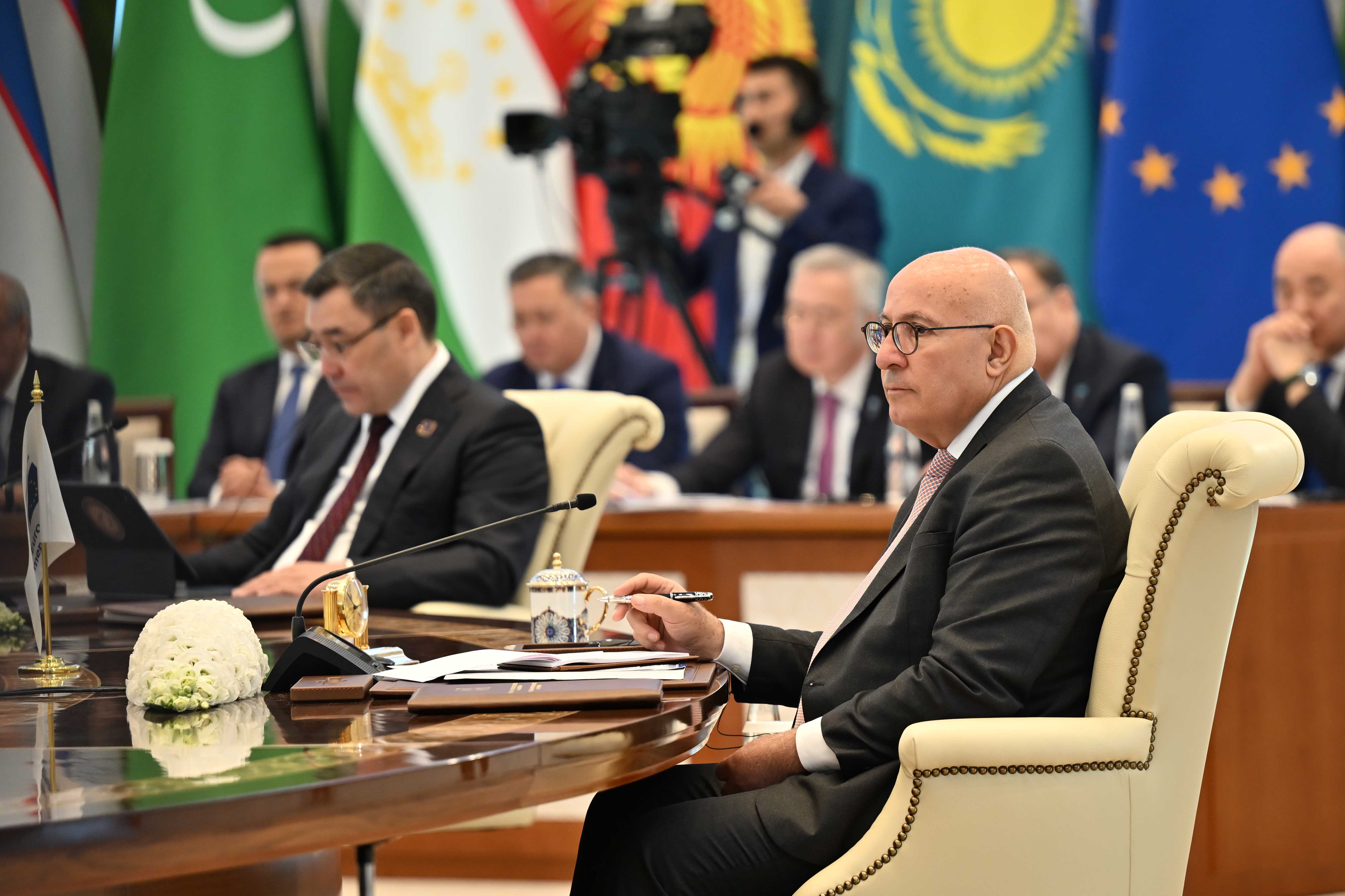В начале своего выступления Глава нашего государства поблагодарил Президента Узбекистана Шавката Мирзиёева за гостеприимство и высокий уровень организации саммита. Он также выразил признательность Президенту Европейского совета Антониу Коште, Президенту Европейской комиссии Урсуле фон дер Ляйен и главам государств Центральной Азии за неизменную приверженность укреплению многопланового сотрудничества.