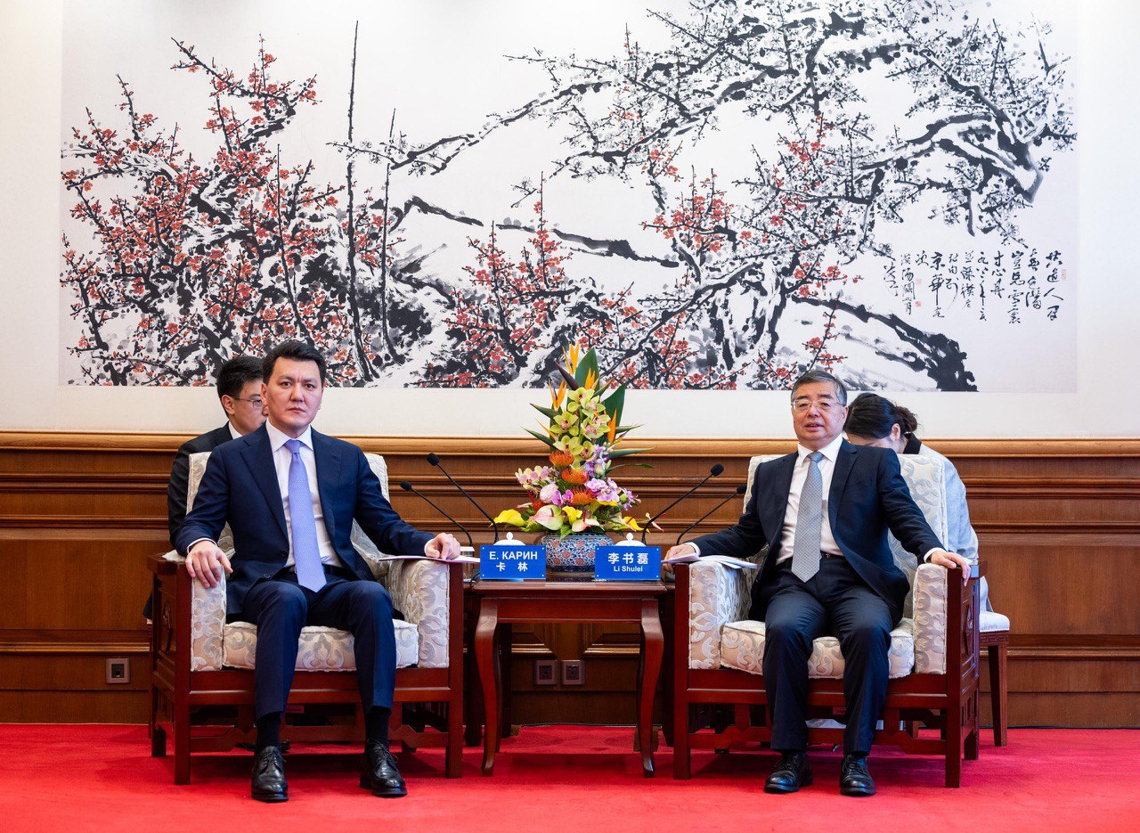 Ерлан Карин встретился с Председателем Всекитайского комитета Народного политического консультативного совета Китая Ван Хунином и заведующим Отделом пропаганды ЦК КПК Ли Шулэем.