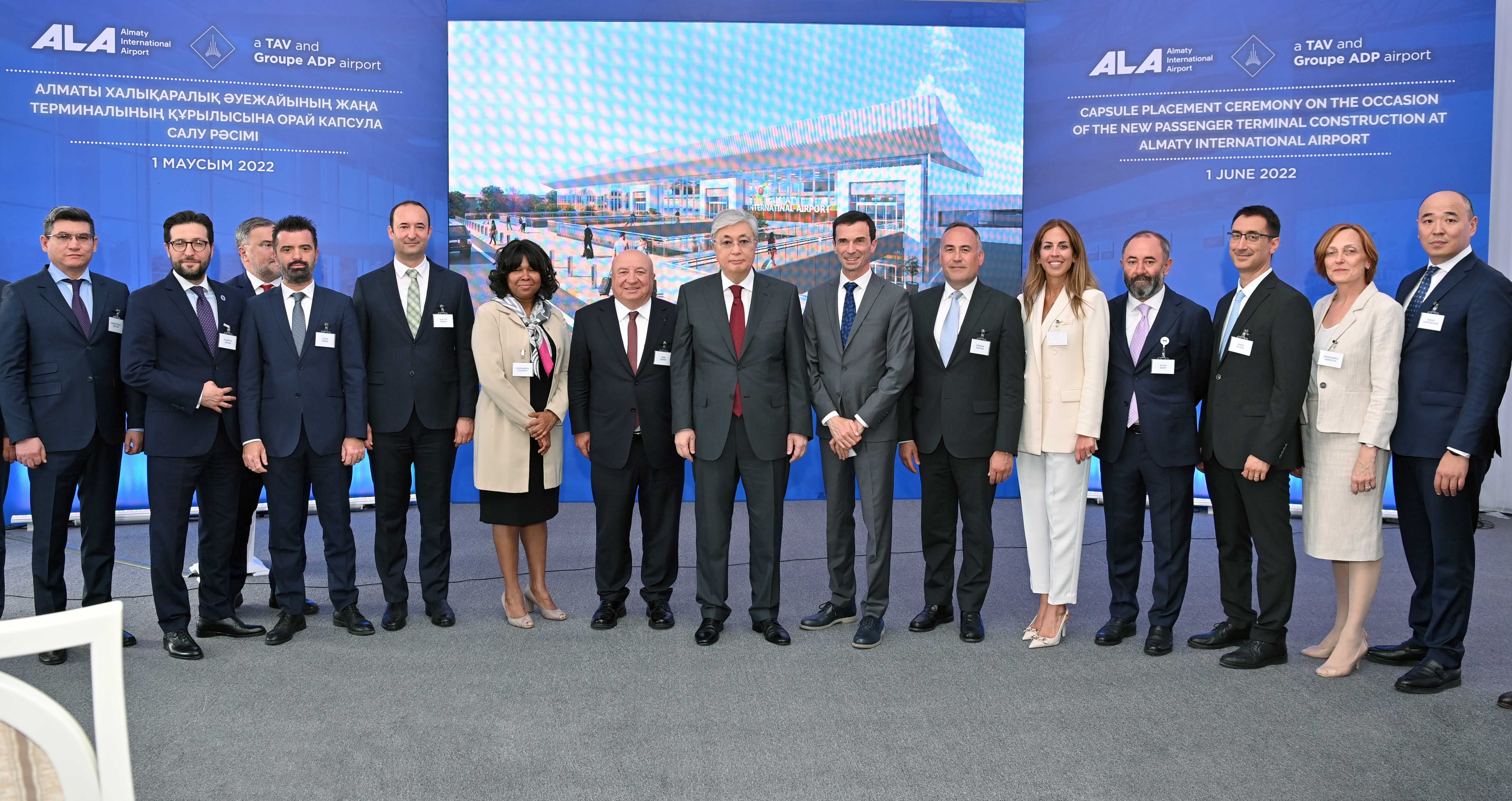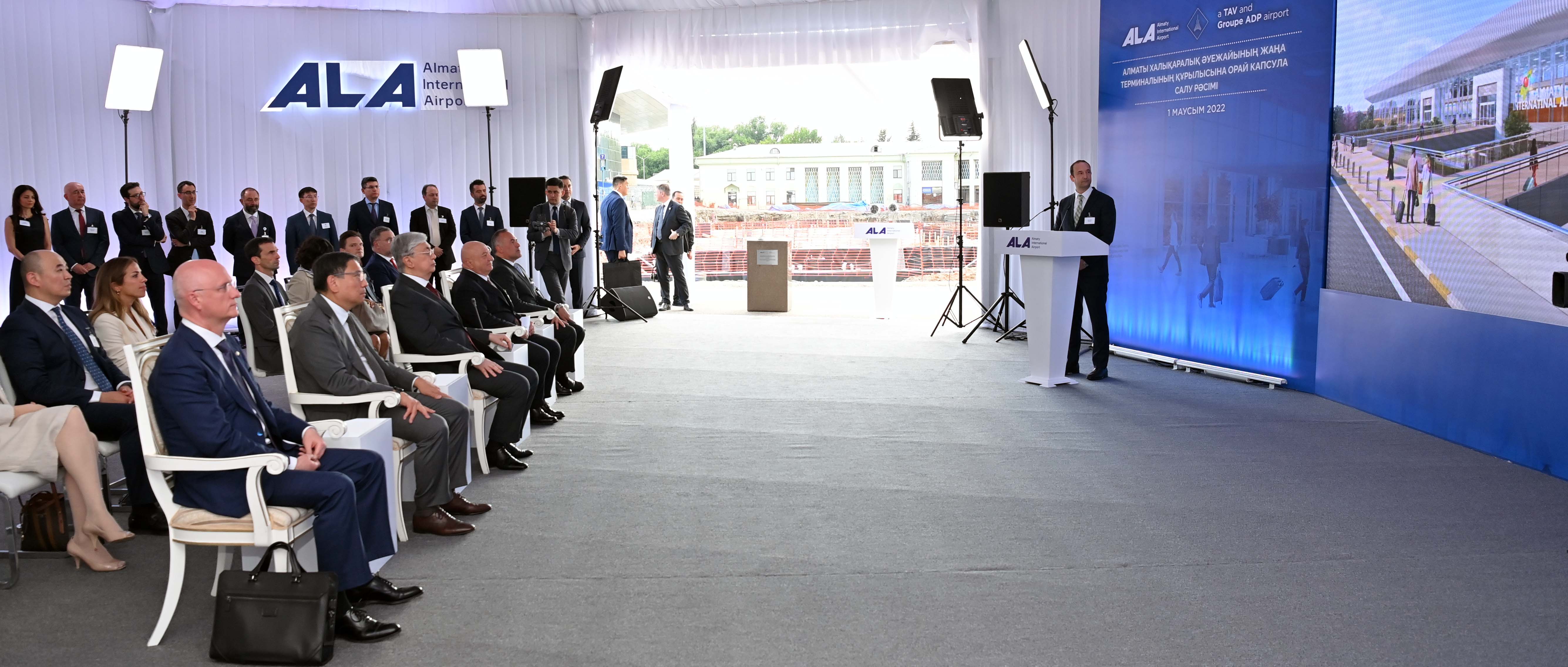 Затем, заложив капсулу, Касым-Жомарт Токаев дал старт началу строительства нового международного терминала.