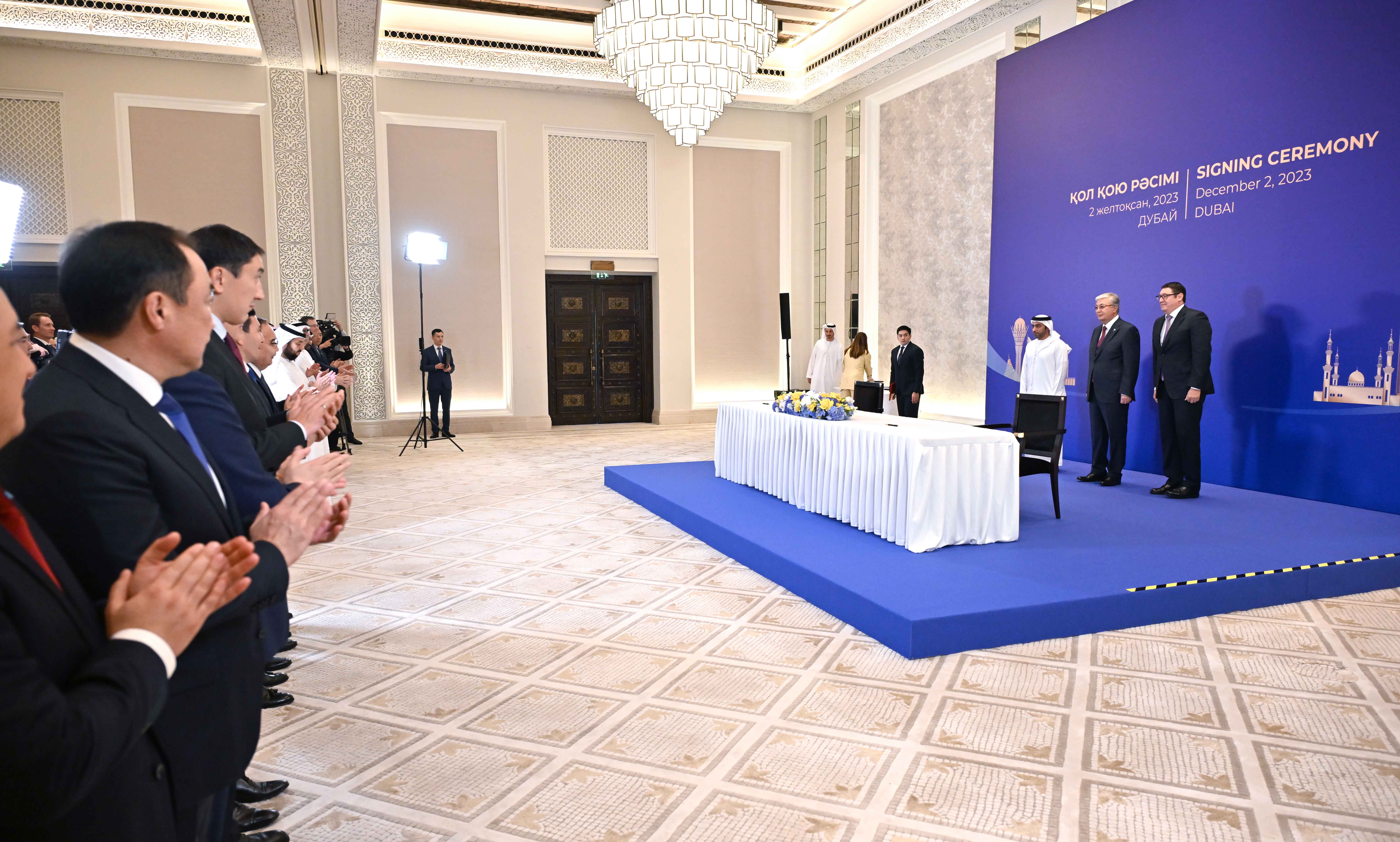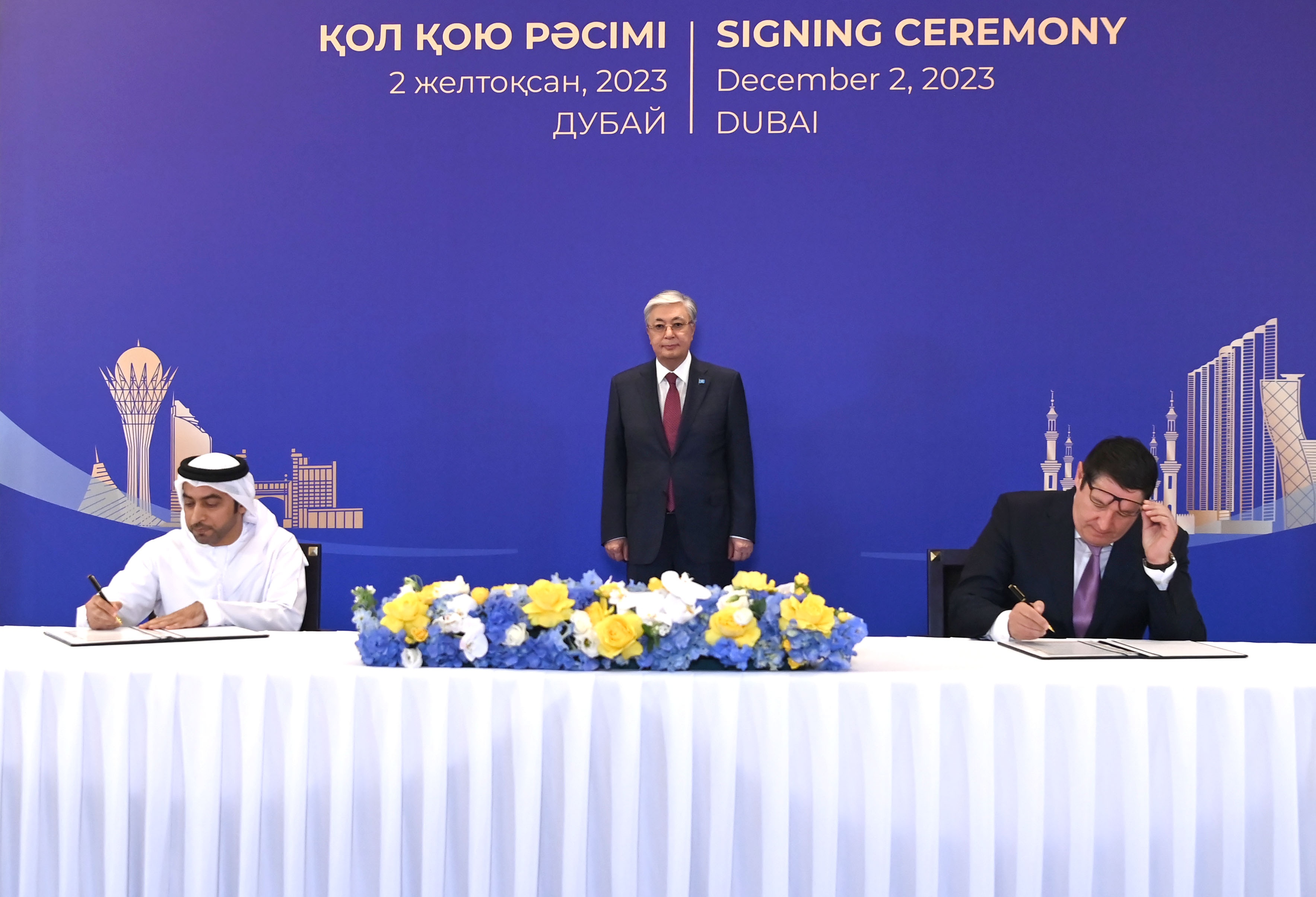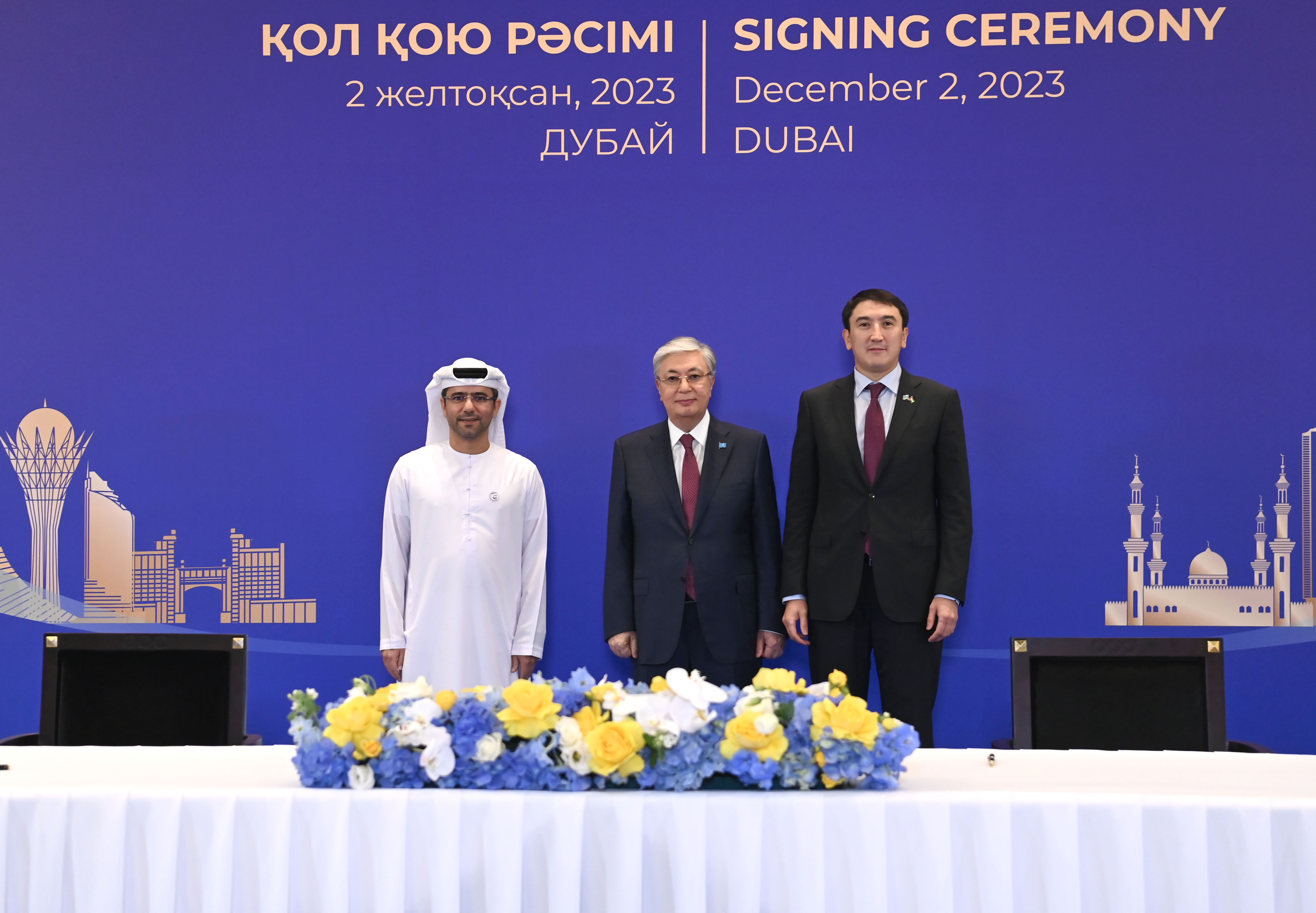 Глава государства Касым-Жомарт Токаев, участвующий в работе Всемирного климатического саммита СОР 28 в Дубае, посетил церемонию подписания ряда соглашений между государственными органами и бизнес-структурами Казахстана и других стран.