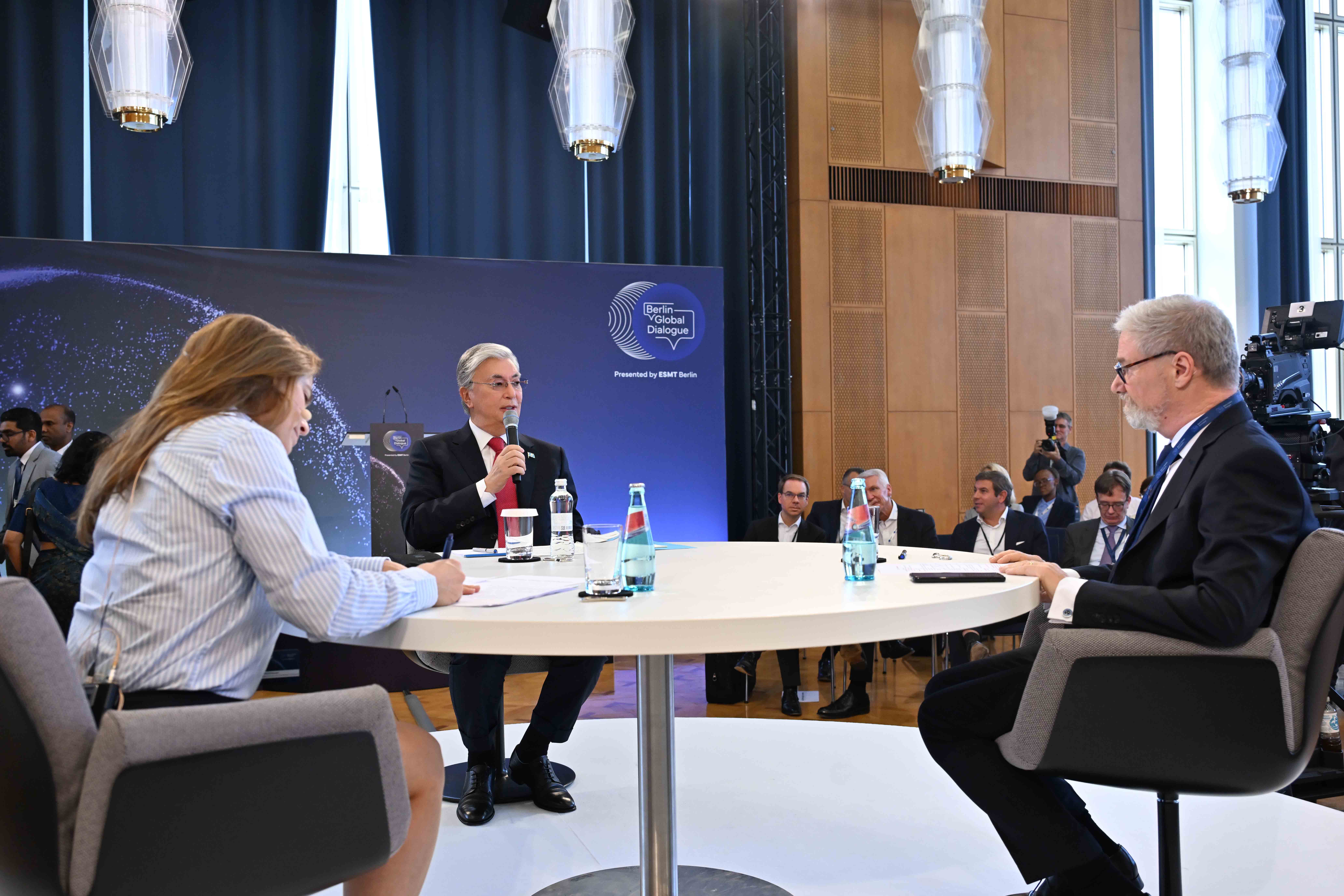 Касым-Жомарт Токаев принял участие в работе первого форума Berlin Global Dialogue. На сессии «Диалог лидеров» Глава нашего государства представил свое видение роли Казахстана в глобальных экономических процессах.