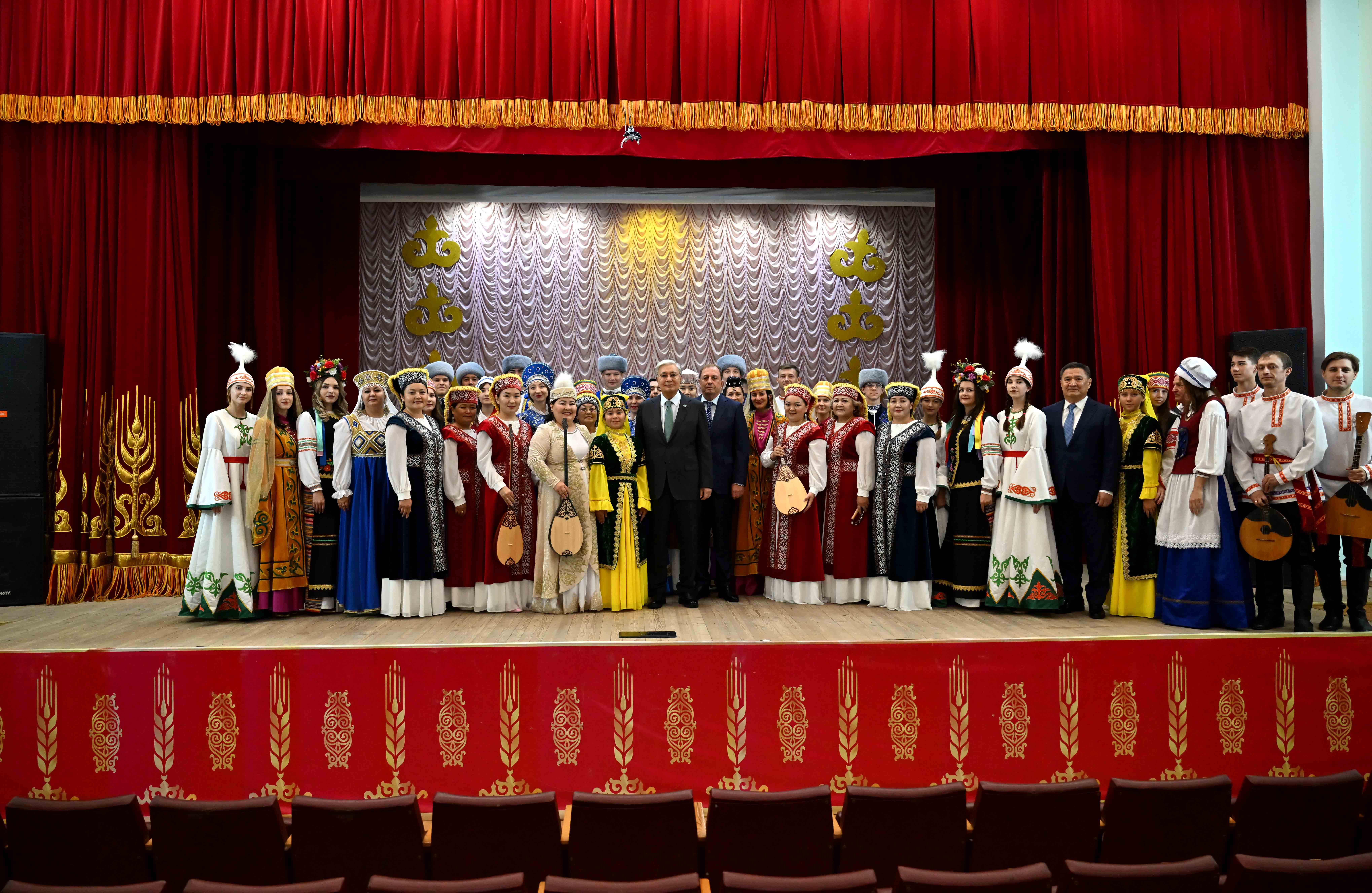 Глава государства посмотрел композицию «Достық шуағы» в исполнении артистов Дома культуры и побеседовал с местными жителями.