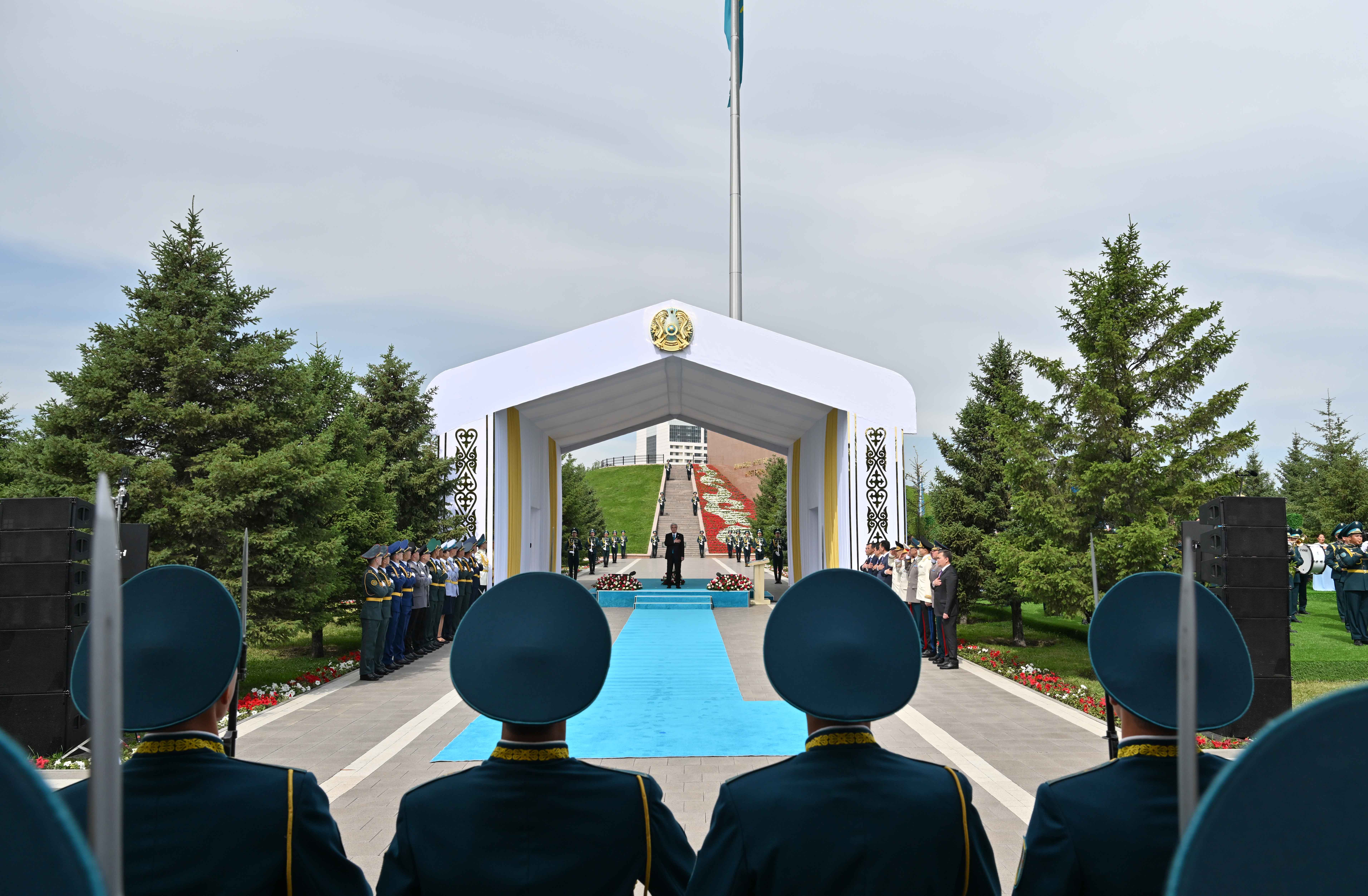 Касым-Жомарт Токаев принял участие в торжественной церемонии поднятия Государственного флага в этномемориальном комплексе «Атамекен» в Астане. Начальник роты почетного караула отдал Президенту рапорт о готовности к церемонии. Затем прозвучал Государственный гимн и был поднят Государственный флаг Республики Казахстан.