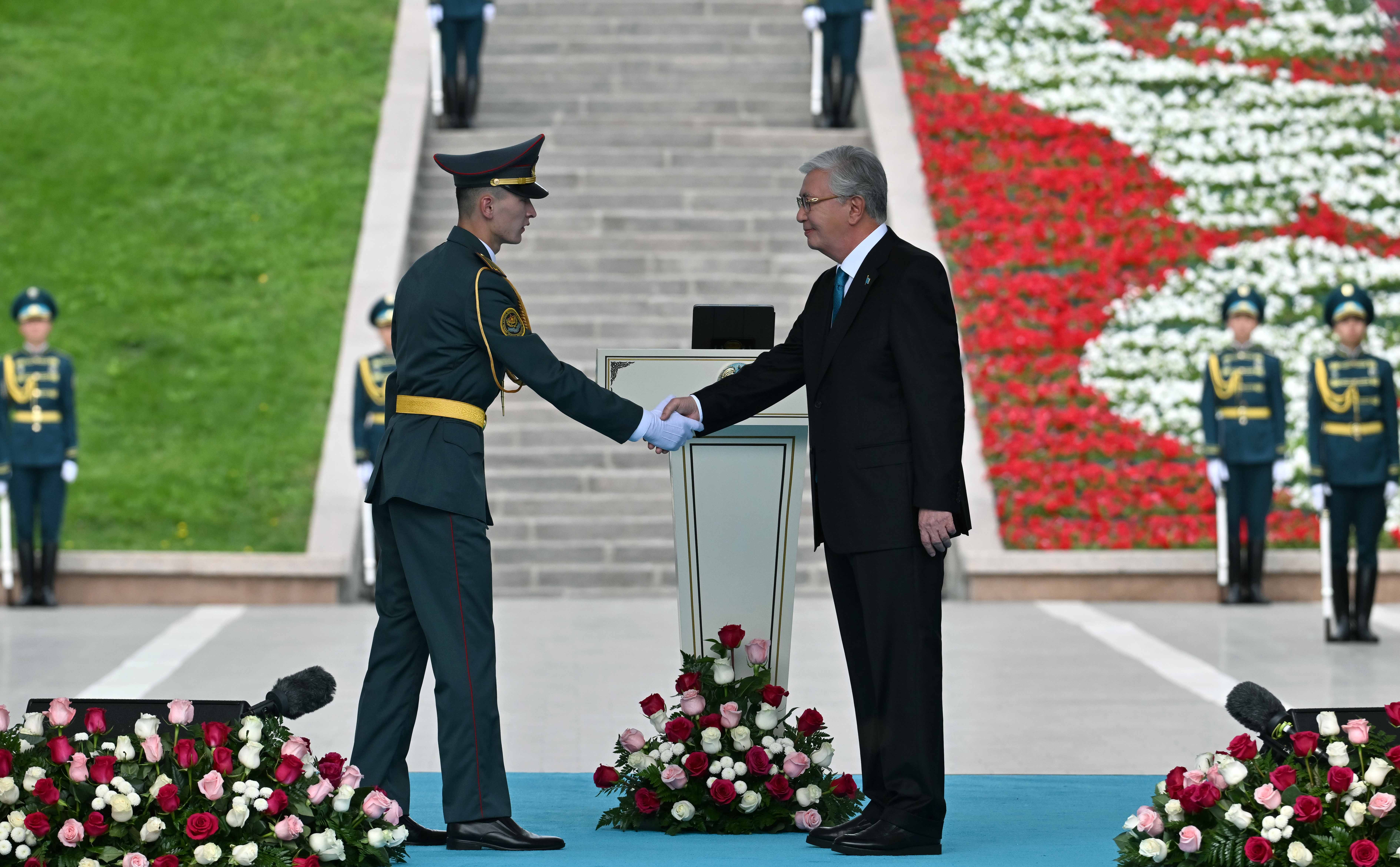 – В этом году наши военнослужащие впервые самостоятельно выполнили миротворческую миссию под небесно-голубым полотнищем. Казахстан – сильное и прогрессивное государство, и это подтверждают достижения наших соотечественников. Государственные символы пробуждают в каждом из нас неизмеримое чувство гордости за страну. Герб, Флаг и Гимн – это олицетворение подлинного патриотизма. Они занимают особое место в сердце каждого гражданина. В них ярко воплощаются наша общенациональная идентичность и устремленность в будущее, – подчеркнул Президент.