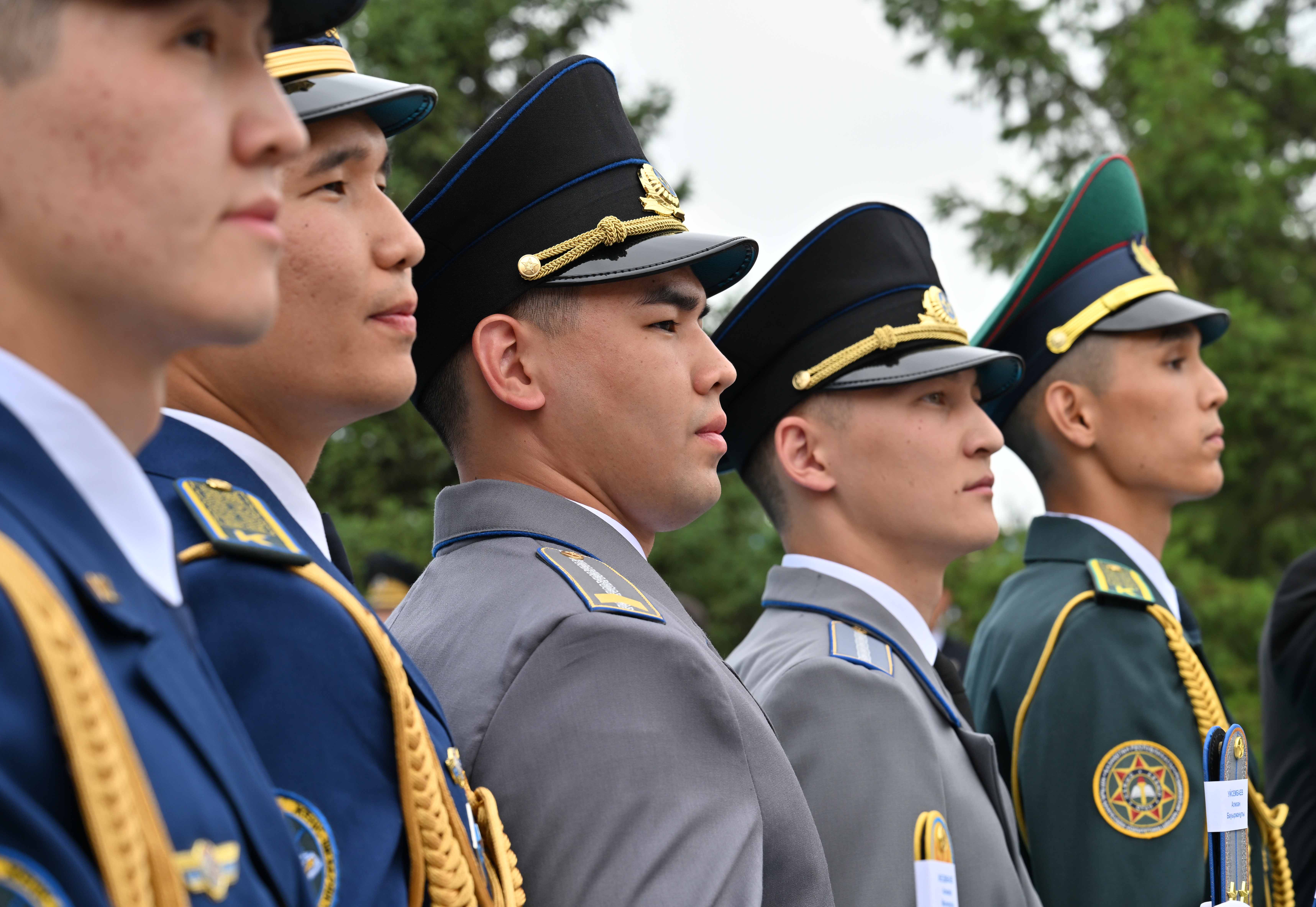– Доброй традицией стало вручение офицерских погонов лучшим курсантам под нашим небесно-голубым знаменем, которое воодушевляет и укрепляет патриотический дух воинов. В такие моменты каждый гражданин глубже осознает, что служение родной стране – это его сыновний долг, что он является потомком отважных батыров, доблестно защищавших нашу Отчизну. Военнослужащие, стоящие на страже рубежей государства, достойно продолжают славные традиции храбрых предков. Уверен, вы всегда будете высоко держать священный флаг нашей страны. Пусть гордо реет наш небесно-голубой стяг! Мира и благополучия нашей Родине! – пожелал Глава государства.