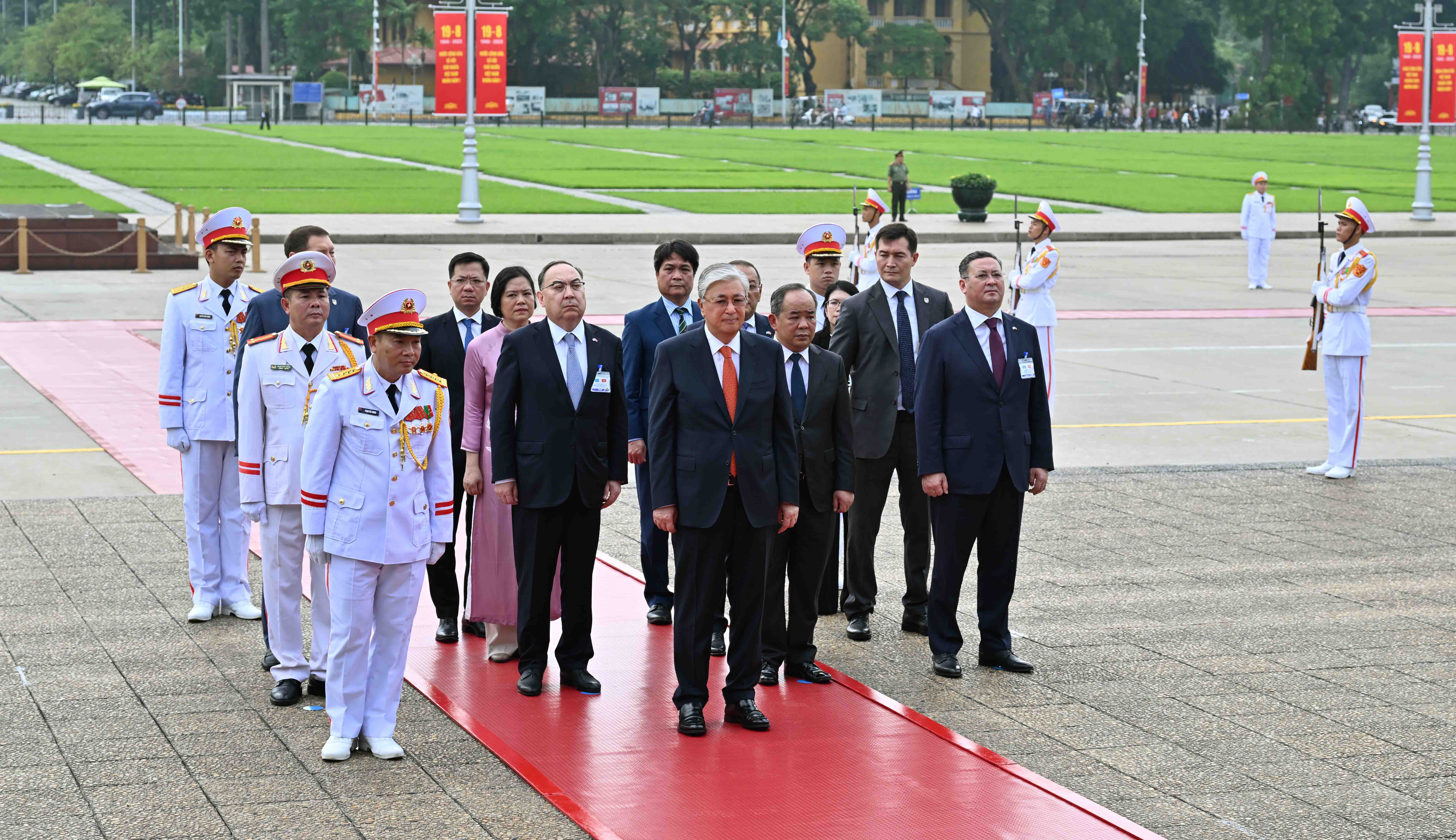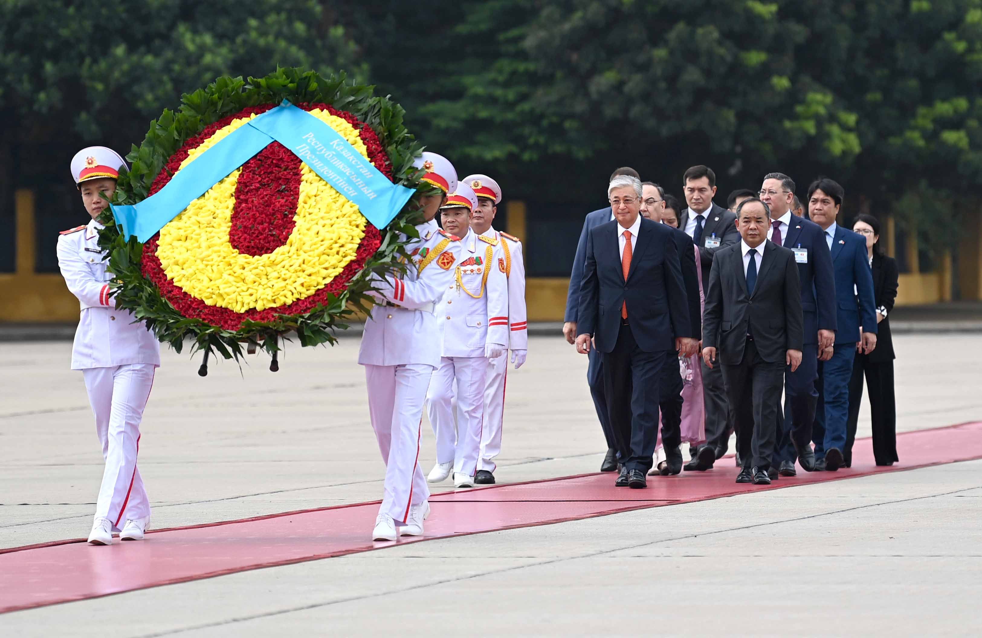 Официальный визит в Социалистическую Республику Вьетнам Главы государства Касым-Жомарта Токаева начался с церемонии возложения цветов к монументу национальным героям и мавзолею Хо Ши Мина, расположенным на площади Ба Динь.
