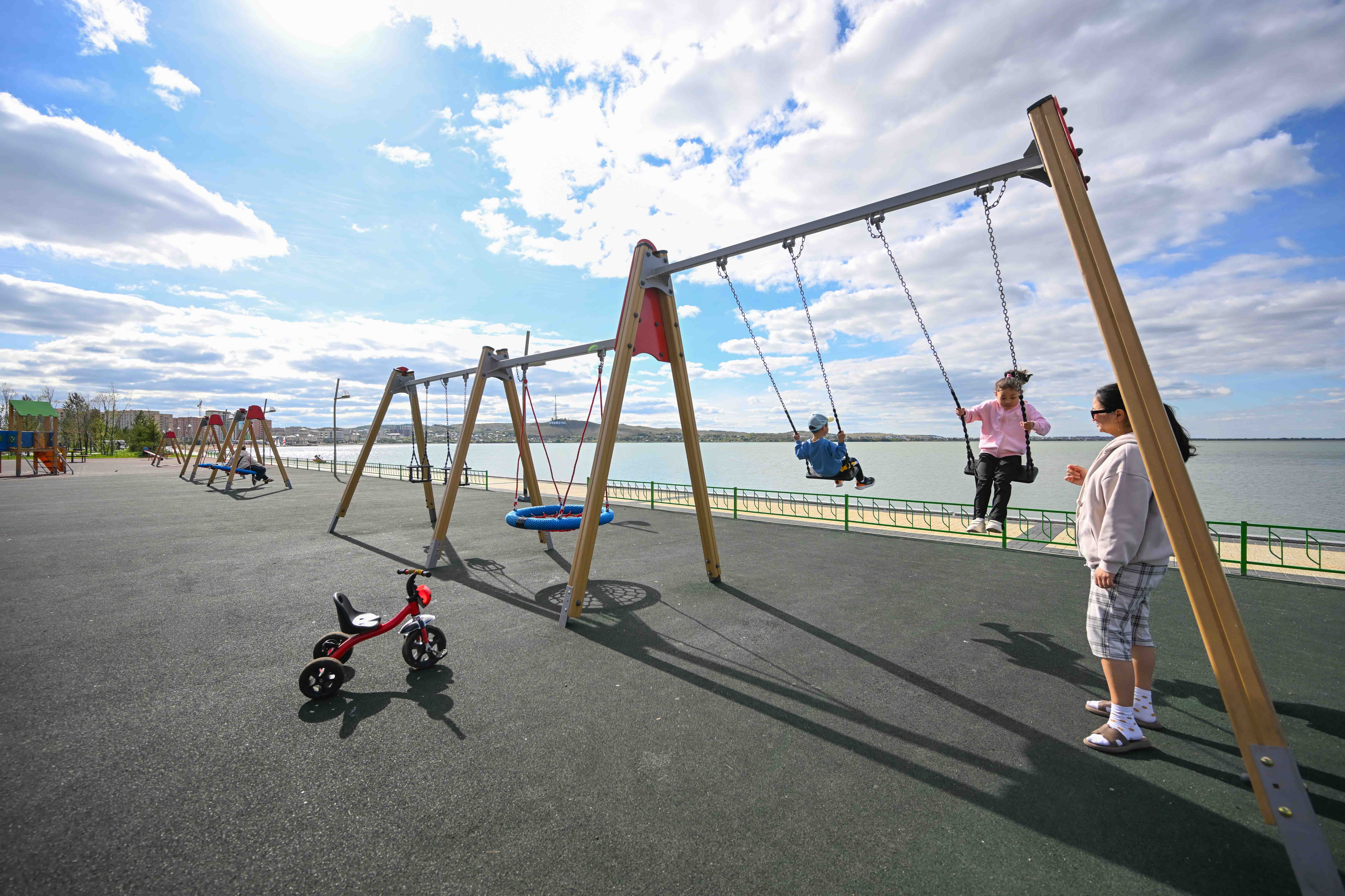 Затем Президент осмотрел новую набережную, введенную в эксплуатацию в июне 2025 года.